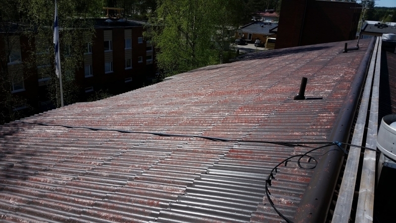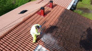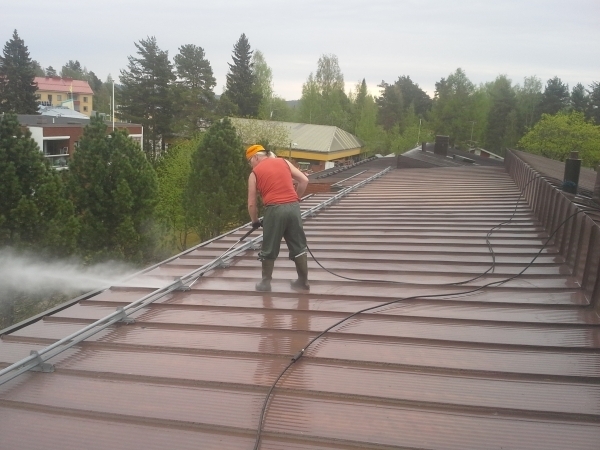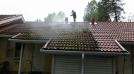Sammaloituneen tiilikaton pesu Juan..